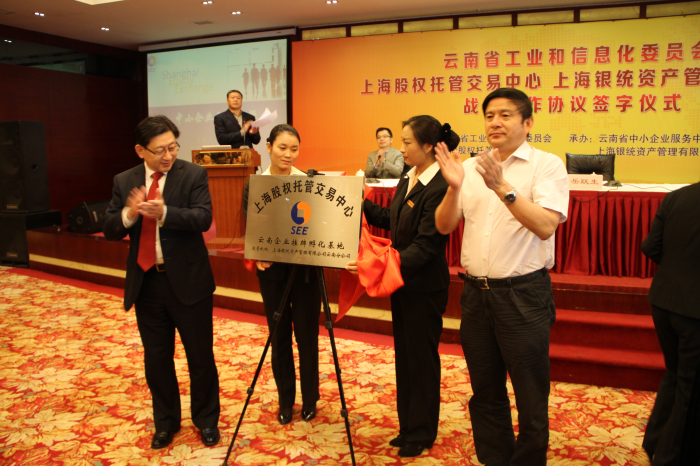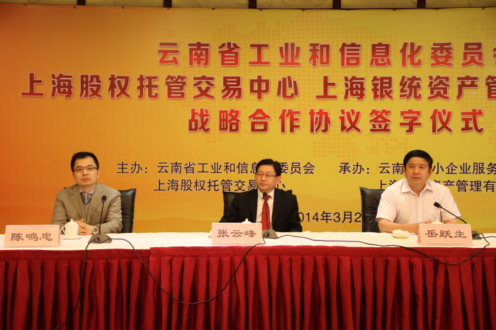 云南省工业和信息化委员会、上海股权托管交易中心、上海银统资产管理中心战略合作协议签字仪式在昆举行 来源: 发布时间:2014-03-25 15:06:12 浏览次数: 次 【字体:小 大】 智能标签: 上海 中心 云南省 工业 信息化 相关内容 【打印正文】