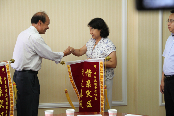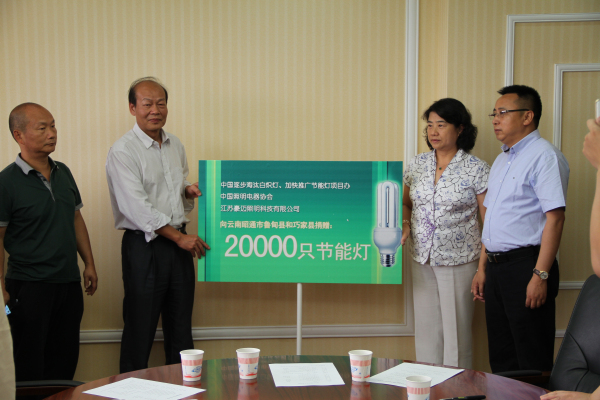 8月14日,由国家发展改革委/联合国开发计划署/全球环境基金中国逐步淘汰白炽灯、加快推广节能灯项目办(以下简称绿照项目办)和中国照明电器协会联合组织的“光爱之行·4万只节能照明产品情系云南昭通地震灾区”活动在云南昆明举行。云南省工业和信息化委员会党组副书记、副主任宋嘉林、云南省昭通市工信委副主任王元勋、中国照明电器协会理事长刘升平、杭州鸿雁电器有限公司副总裁章媛、江苏豪迈照明科技有限公司董事长龚仕宏等出席捐赠活动。