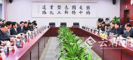 昨日下午,省委、省政府在北京与工业和信息化部举行工作座谈。会议强调,要深入贯彻落实习近平总书记考察云南重要讲话精神,按照创新、协调、绿色、开放、共享的发展理念,合力推进工业转型升级,加快构建现代产业体系,推动云南工业和信息化跨越式发展。