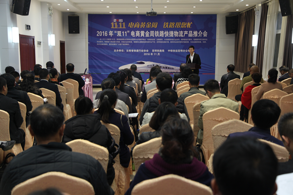 昆明铁路局召开2016年“双11”电商黄金周铁路快捷物流产品推介会 来源:交通与物流处 发布时间:2016-11-10 10:36:28 浏览次数: 次 【字体:小 大】 为加大对铁路物流服务推介力度,深挖2016年双“11”电商黄金周电商快递货源,11月8日,昆明铁路局联合中铁快运昆明分公司、云南省快递行业协会召开2016年“双11”电商黄金周铁路快捷物流产品推介会,省内如京东、申通、顺丰、EMS等54家电商快递企业参加会议。会上,昆明铁路局、中铁快运昆明分公司对高铁快运、电商快速班列等铁路快捷物流产品作了全面推介。预计今年“双11”电商黄金周期间,昆明铁路局可通过客车、行李车运输电商快件400吨以上, 实现新增电商快递货源1000吨以上。 【打印正文】