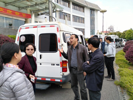 旷昆萍局长一行首先参观了应急指挥调度车、监测车和干扰压制车等多种移动监测设施。我中心陈德章主任讲解了监测车辆的功能和特点,并进行了现场演示。
