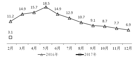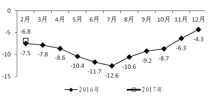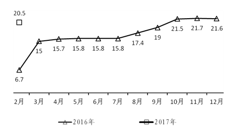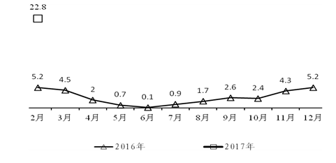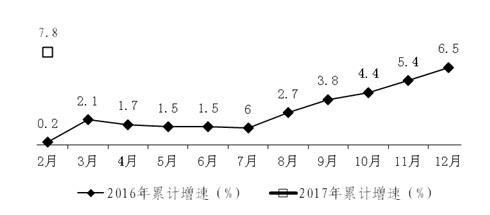 (五)工业生产者出厂价格指数持续回升。工业生产者出厂价格指数延续去年10月份以来持续回升态势,连续5个月同比上涨。今年1月份,全省工业生产者出厂价格同比上涨5.0%,2月份同比上涨5.5%,1-2月平均增长5.3%。