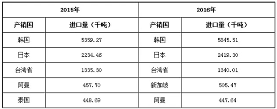 2016年PX进口产销国和地区前三位仍然是韩国、日本及台湾。主要是因为中国PTA产能占比最大,为全球最大的PX需求国,而上述地区近年来不断扩大PX产能,且凭借自身地理位置优势,尽可能在中国PX市场尚不能自给自足前分一杯羹;新加坡跻身于第四位,则是因为新加坡裕廊芳烃PX装置因BP注资逐渐解决内部政策问题并于年内成功重启开车运行所致。