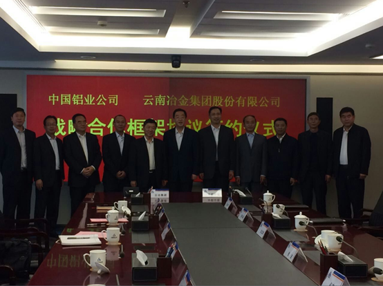 云南冶金集团与中国铝业公司在京签署战略合作框架协议 来源:原材料工业处 发布时间:2017-05-05 09:53:14 浏览次数: 次 【字体:小 大】 4月6日—7日,云南冶金集团股份有限公司与中国铝业股份有限公司在京举行会谈,双方就开展铝产业领域合作达成一致意见,签署了战略合作框架协议。合作双方在国家调整铝产业布局的背景下,充分依托云南的资源、能源、区位优势和双方的技术、管理、人才优势,在铝合金轻量化、清洁能源利用等方面开展全面深度合作,延伸铝加工产业链,形成铝全产业链竞争优势。推动建立“2+2+2”(2省区、2园区、2公司)合作机制,在广西防城港、文山—百色跨省经济合作园区等地开展项目合作,打造西南地区合作共赢的新空间。 【打印正文】
