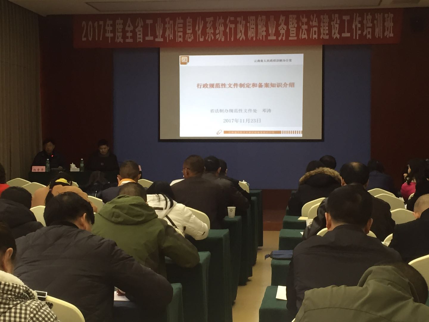 2017年度全省工业和信息化系统行政调解业务暨法治建设工作培训班在昆明举行