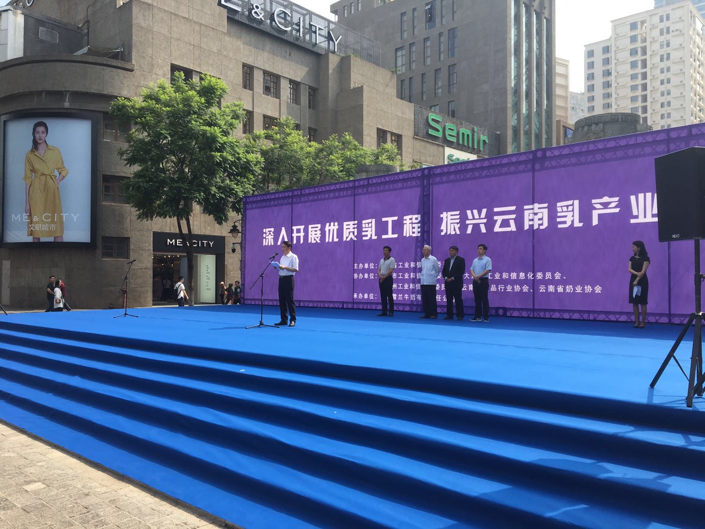7月23日,省工业和信息化委员会联合昆明市工信委、大理州工信委、红河州工信委,以及省食品行业协会、省奶业协会在昆明五华区南坪广场举行食品安全宣传周主题活动。省工业和信息化总经济师陈钟耕出席并代表省工信委就振兴云南省奶业发展工作作了讲话,省奶业协会会长毛华明就云南省奶业发展现状及产业技术水平、产品质量安全等方面的内容作了发言。
