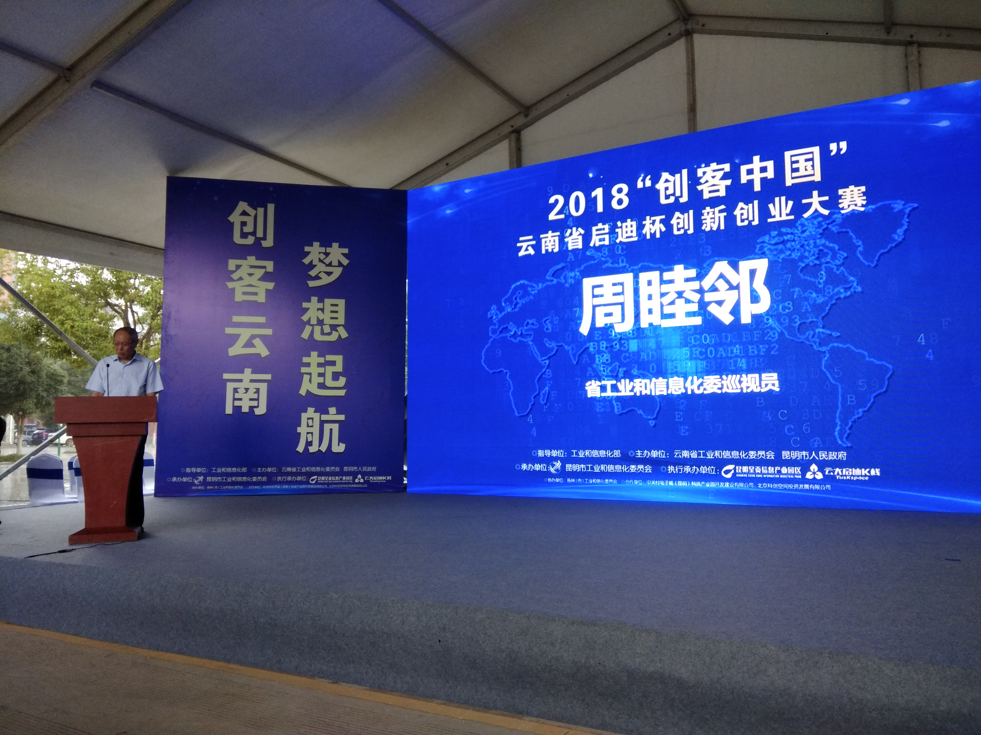 7月31日,2018年“创客中国”云南省启迪杯创新创业大赛颁奖典礼在云上小镇举行,省工业和信息化委周睦邻巡视员出席颁奖典礼并致辞。
