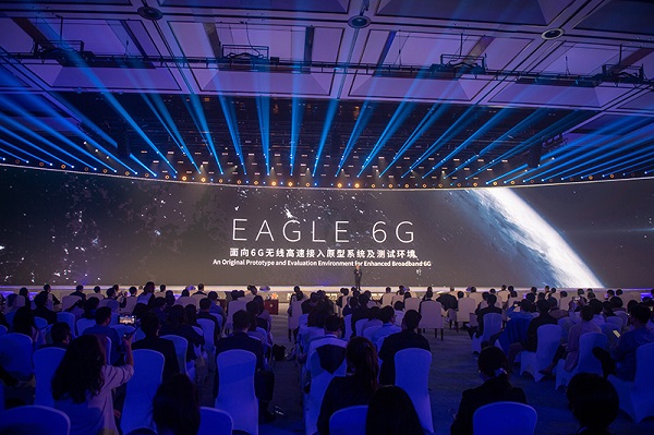 在浙江乌镇举行的2022年世界互联网大会乌镇峰会上拍摄的“EAGLE 6G:面向6G无线高速接入原型系统及测试环境”发布现场(2022年11月9日摄)。新华社记者 江汉 摄
