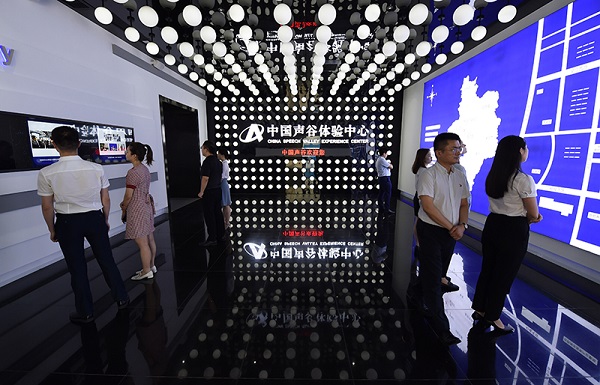 市民在位于安徽合肥的“中国声谷”体验中心参观(2021年7月1日摄)。新华社记者 周牧 摄