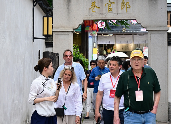 “鼓岭之友”部分成员和中美各界人士在福州南后街三坊七巷参观访问(2023年6月27日摄)。新华社记者 魏培全 摄