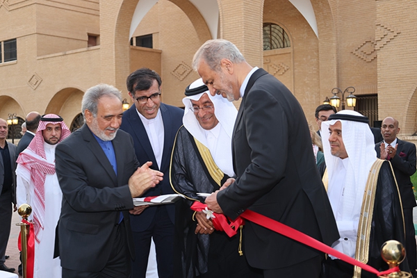 6月6日,在沙特阿拉伯利雅得,伊朗副外长比格德利(前右一)、沙特副外交大臣优素福(前右二)等出席伊朗驻沙特阿拉伯大使馆复馆仪式。新华社记者 王海洲 摄