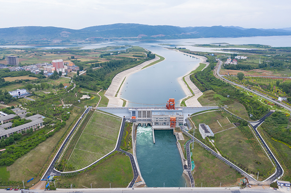 这是2021年5月20日在河南省南阳市淅川县拍摄的南水北调中线工程陶岔渠首(无人机照片)。新华社记者 才扬 摄