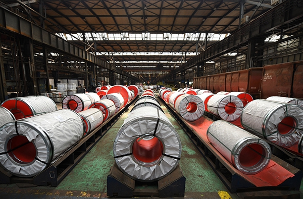 这是在河钢集团塞尔维亚斯梅戴雷沃钢厂拍摄的成品钢卷(2023年5月5日摄)。新华社记者 任鹏飞 摄