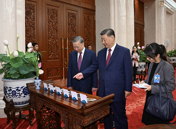 签字仪式后,习近平同苏林进行小范围茶叙,在亲切友好的氛围中就共同关心的重要问题继续进行深入交流。