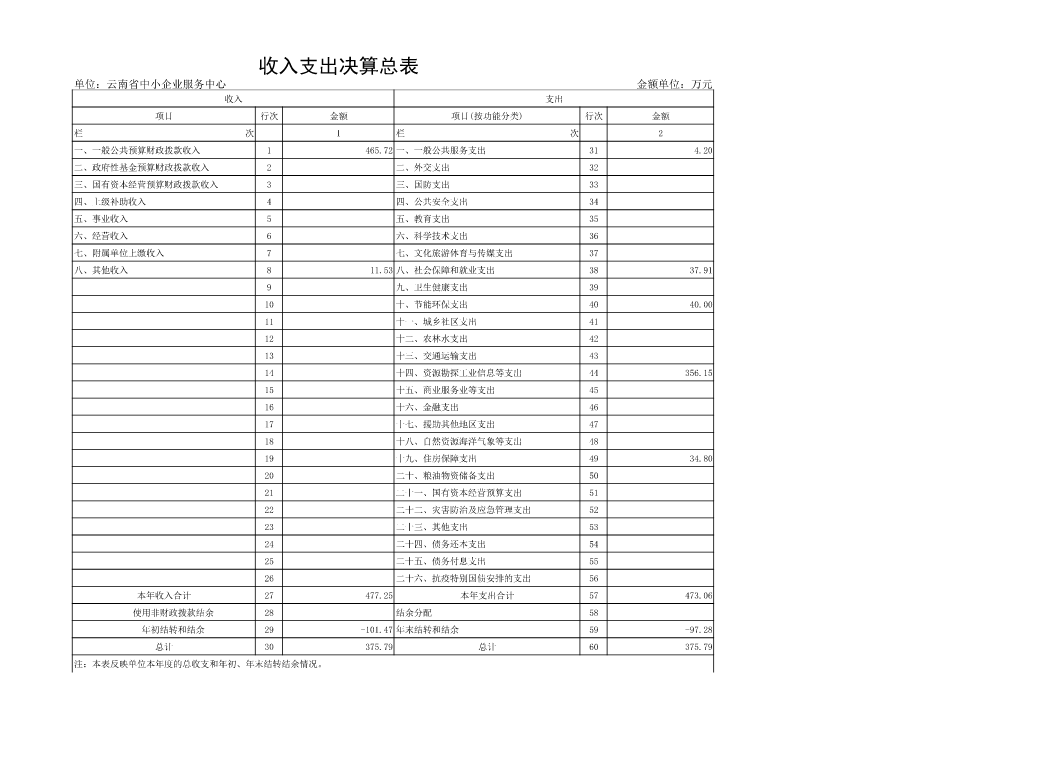 附件:云南省中小企业服务中心2020年度决算公开报表