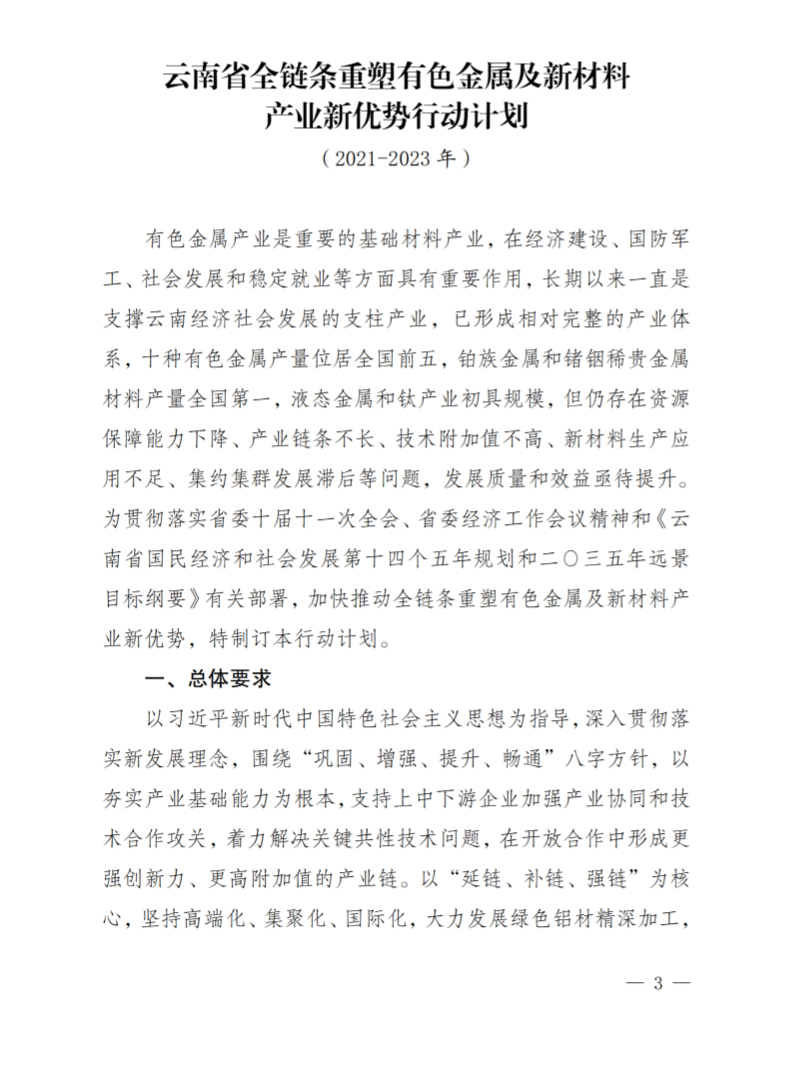 附件:云南省全链条重塑有色金属及新材料产业新优势行动计划
