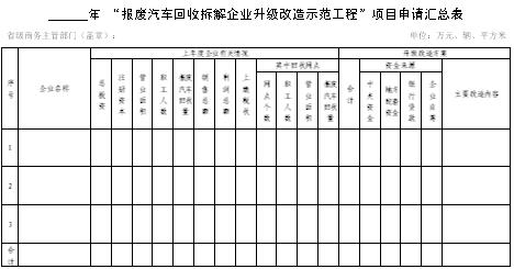 1. “报废汽车回收拆解企业升级改造示范工程”项目申请汇总表