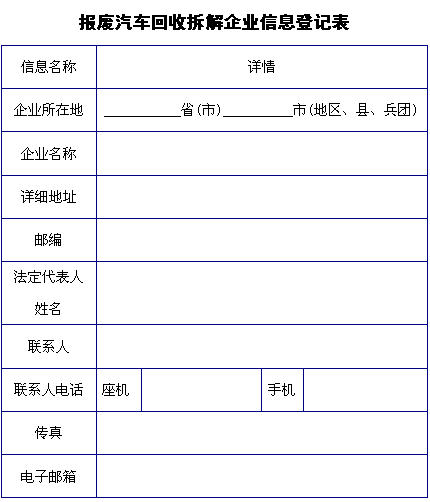 关于报送各地商务主管部门、报废汽车回收拆解企业有关信息的通知
