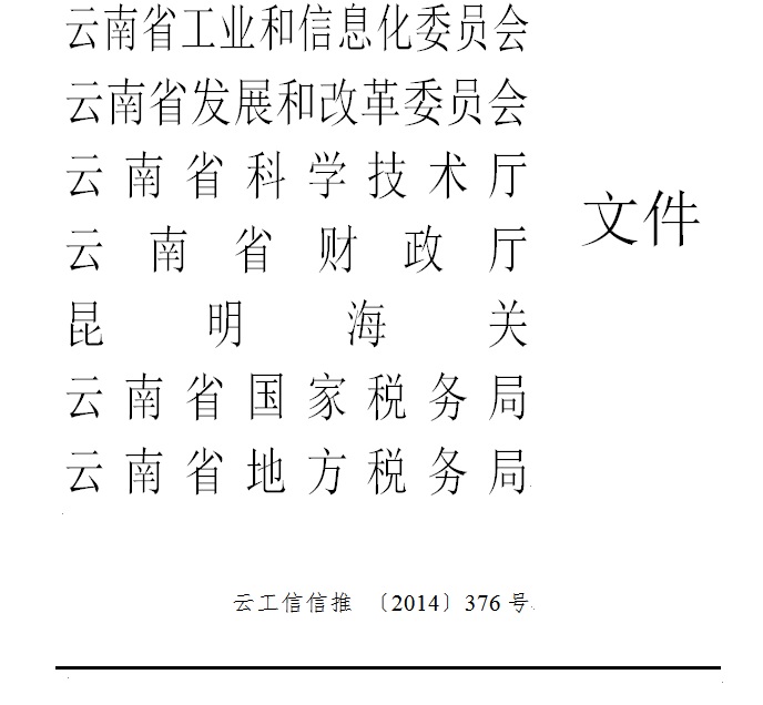 文山壮族苗族自治州、楚雄彝族自治州、普洱市、玉溪市工信委、发改委、科技局、财政局、国税局、地税局,昆明海关,各有关单位:
