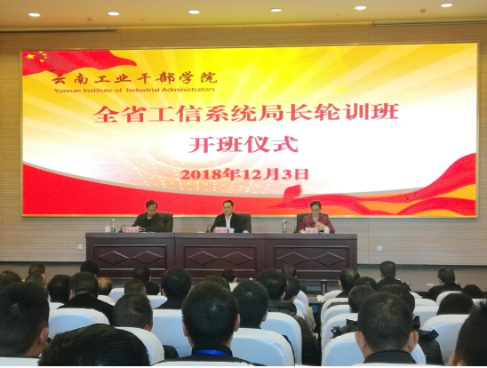 2018年12月3日至7日,由省工信厅主办的第一期全省工信系统局长轮训班,在云南工业干部学院成功举办。省工信厅党组副书记、副厅长唐文祥同志出席开班仪式并做动员讲话,来自昆明、普洱、德宏等八个州(市)工信委(局)和产业园区的主要负责人共计116人参加了培训。