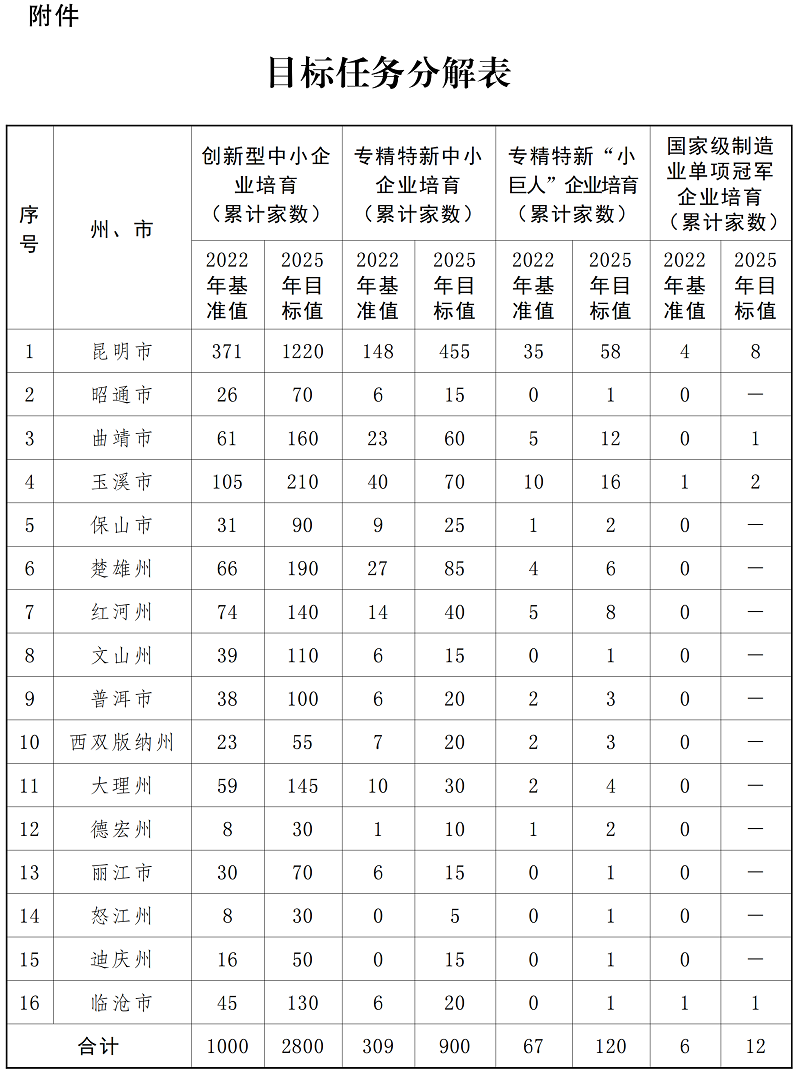 云南省专精特新企业培育三年行动计划